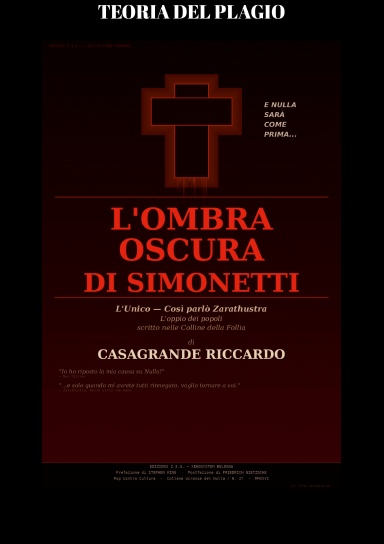L’Ombra Oscura di Simonetti non è un personaggio. Non è un alter ego. Non è una metafora psicologica. L’Ombra è un’entità autonoma che abita il corpo dell’homunculus Casagrande Riccardo e che si manifesta quando il suo nome viene invocato. Chi pronuncia «Simonetti» evoca l’Ombra. Chi pronuncia «Casagrande» parla con l’uomo. Chi legge questo libro fa entrambe le cose simultaneamente.